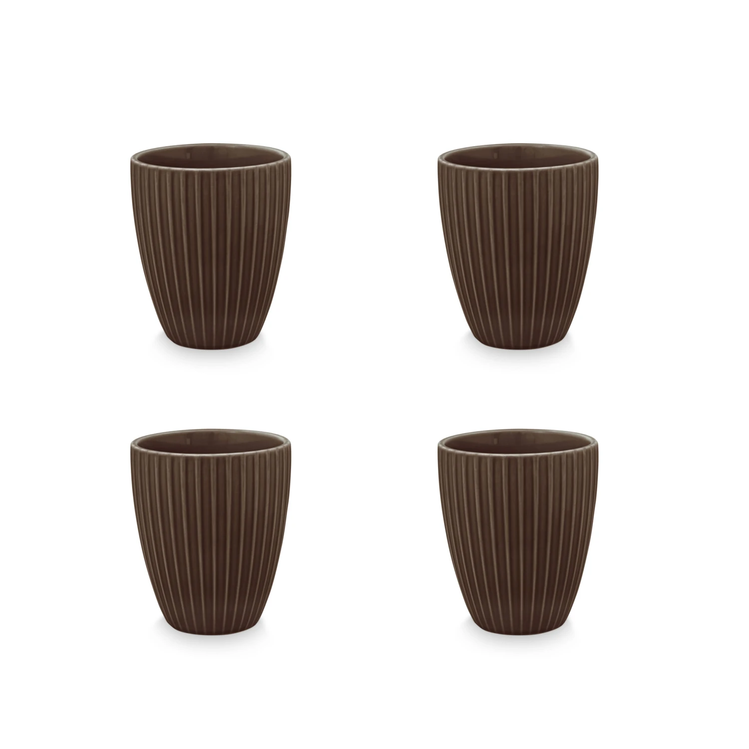 VTwonen 4er-set: Geschirr „Set/4 XL Mugs Without Ear Relievo“ In Braun – 400ml